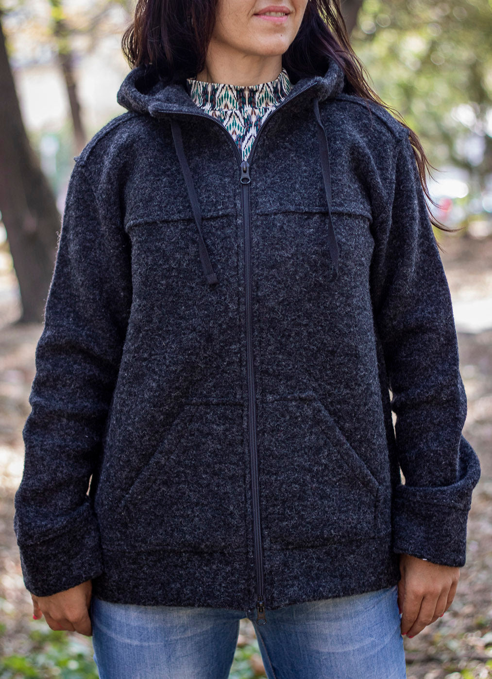 Думата, която най-добре описва това е изделиe e: ТОПЛИНА. Изработено от вълнен филц съдържащ - 80% органична вълна и 20% органичен памук. 100% естествени материали за една по-добра връзка с природата. Наслади се на лекотата и удобството на тази дреха, идеална за преходните сезони.