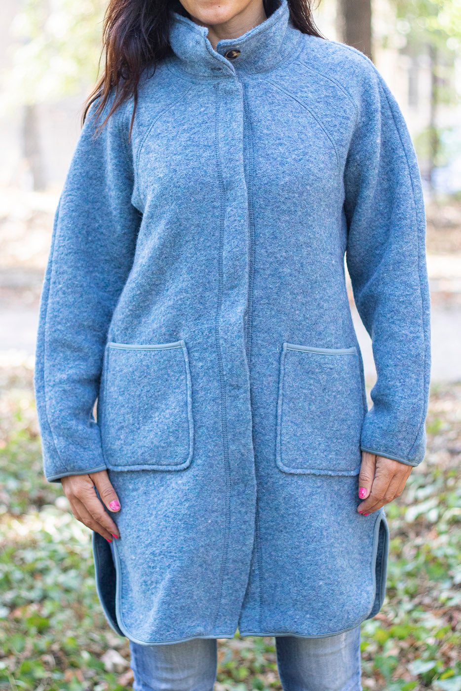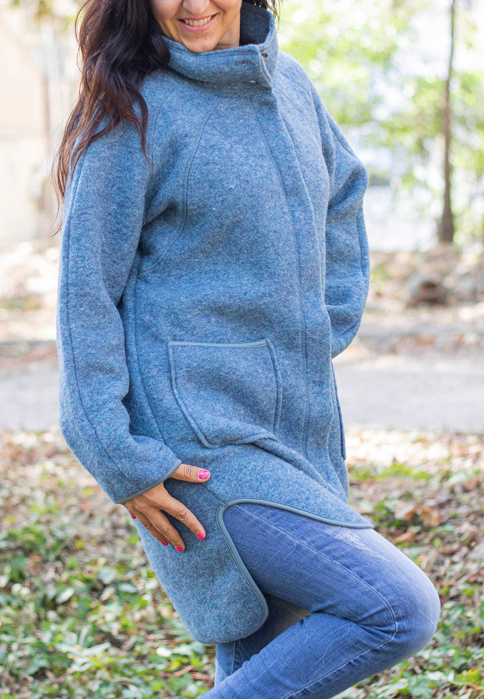 Думата, която най-добре описва това е изделиe e: ТОПЛИНА. Изработено от вълнен филц съдържащ - 80% органична вълна и 20% органичен памук. 100% естествени материали за една по-добра връзка с природата. Наслади се на лекотата и удобството на тази дреха, идеална за преходните сезони.