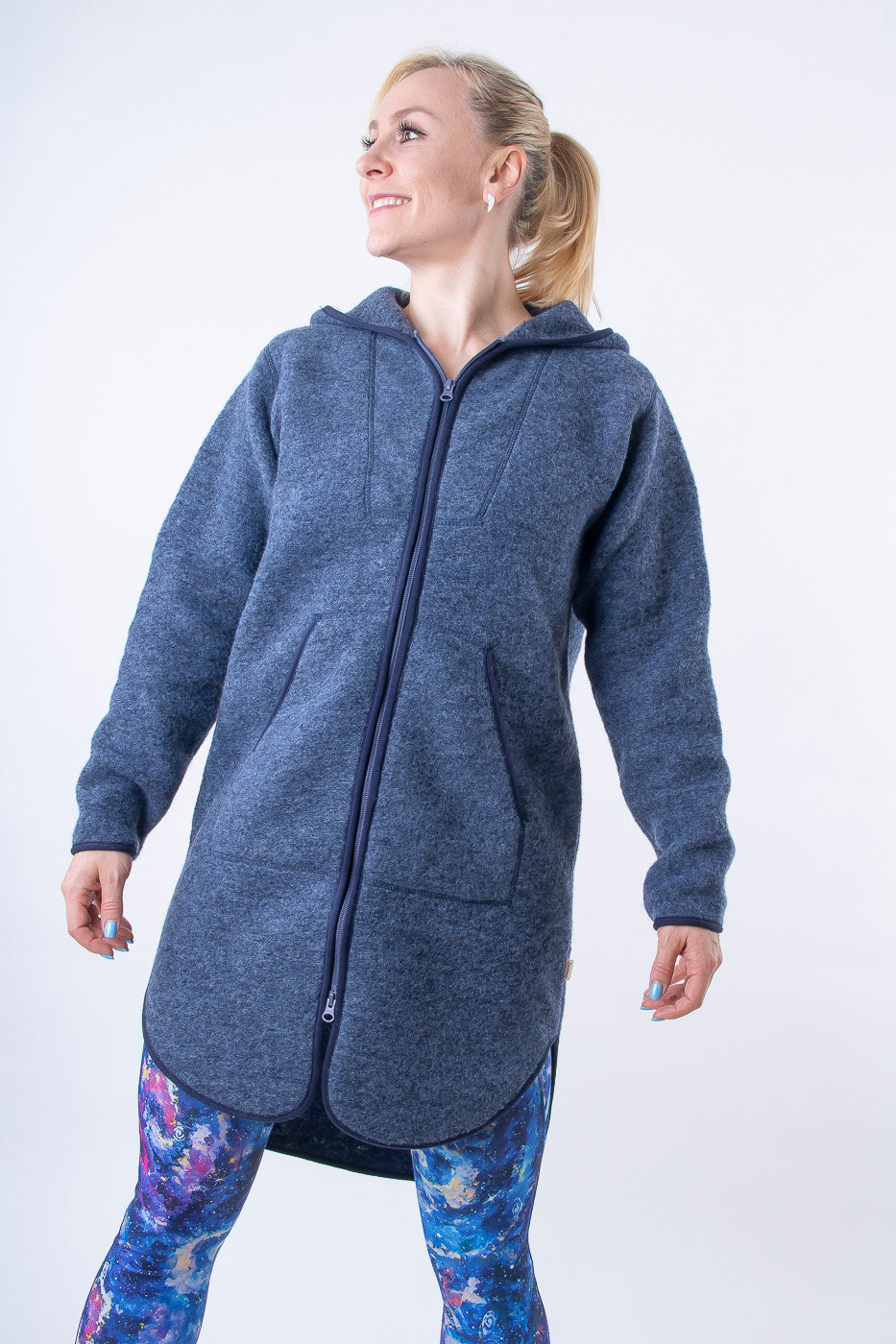Думата, която най-добре описва това е изделиe e: ТОПЛИНА. Изработено от вълнен филц съдържащ - 80% органична вълна и 20% органичен памук. 100% естествени материали за една по-добра връзка с природата. Наслади се на лекотата и удобството на тази дреха, идеална за преходните сезони.