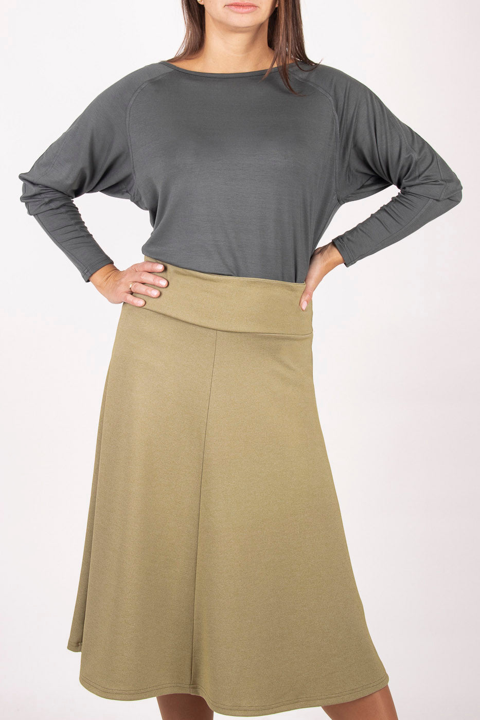 Елегантна пола с дължина под коляното. С модерен силует и А-форма.